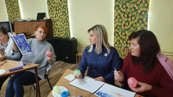 Формування творчої особистості - одна з важливих завдань дошкільної освіти. Художньо-продуктивне образотворення - найбільш ефективний засіб творчих здібностей дітей. Одне з найулюбленіших завдань малюків - малювання, нетрадиційні техніки якого - це спосіб створення нового, оригінального витвору мистецтва. Вихователь І.П. Мельничук ознайомила вихователів з нетрадиційним методом малювання : повітряними кульками. В ході створення своїх картин педагоги проявили свою креативність, уяву та фантазію.